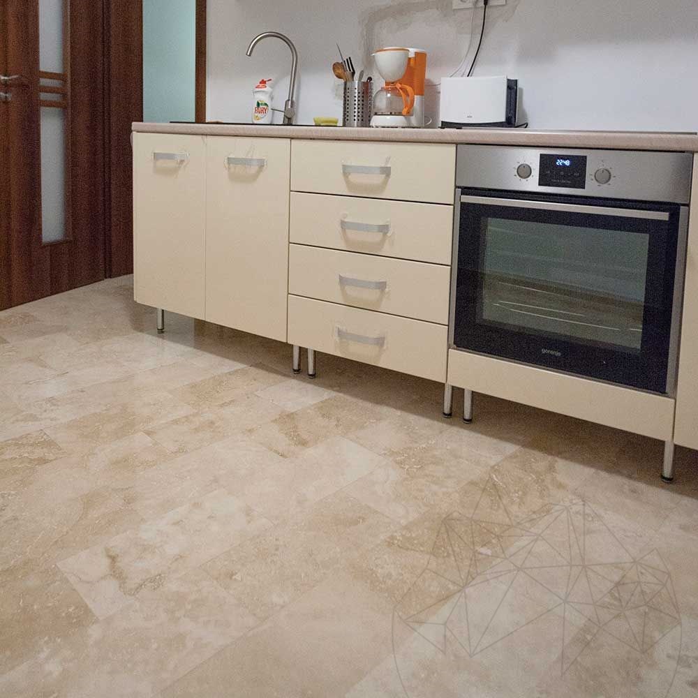 Прекрасният полиран травертин е обожаван заради комплексната си текстура, естествените десени, изрисувани от вариациите в цвета на камъка и деликатните извивки и форми, които е запечатал. Плотът от травертин трансформира и най-семплата кухня в елегантна картина, на която се възхищаваш всеки път.