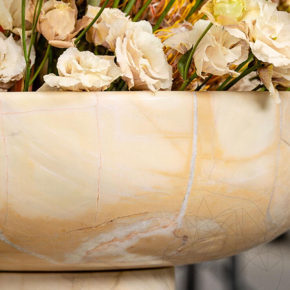 Мивка Аврора от доломит Сънсет е изключителна дизайнерска творба, изработена от естествена доломитна скала, която впечатлява със своите топли и деликатни залезни нюанси. Този уникален материал, известен със своята издръжливост и фина текстура, добавя нотка елегантност и изтънченост към всяка баня или кухня, превръщайки пространството в истинско светилище на комфорт и стил.