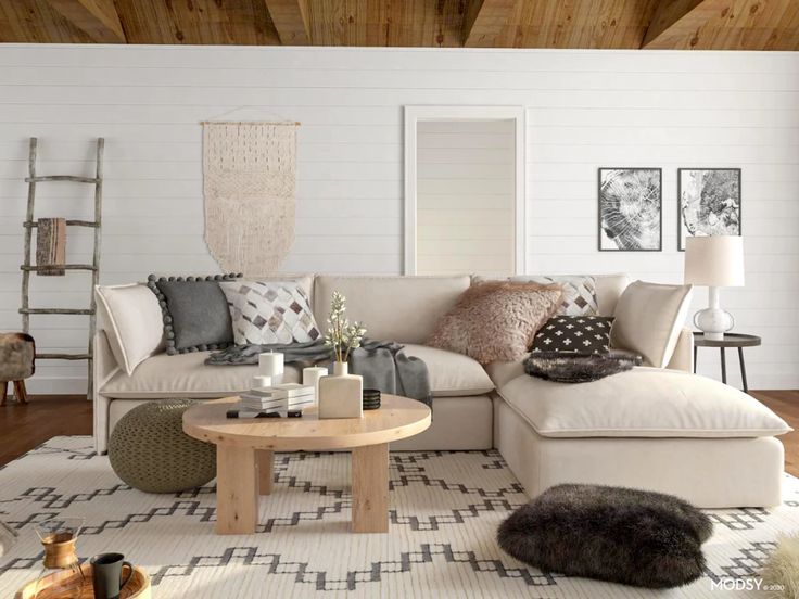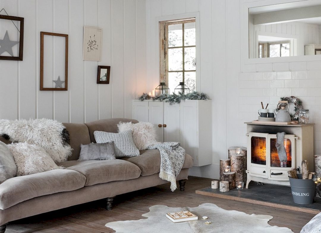 · Много детайли, създаващи уют: плетива, възглавници, одеяла, рамки, вази, книги, свещи, черги и килими (бели с черни детайли или от юта).