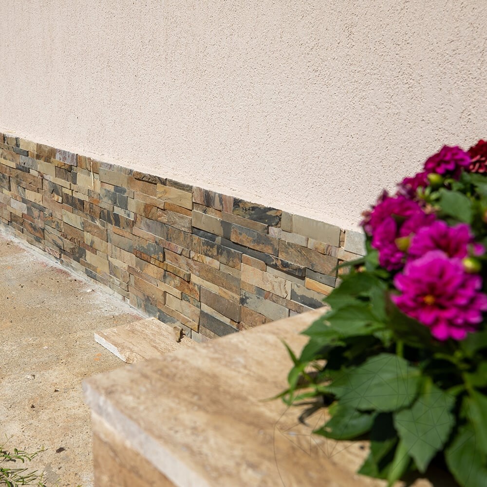 Шистите са подходящи за интериорно и екстериорно оформление и се предлагат в множество формати — плочки, пана, мозайки, павета, плотове и каменни тапети SKIN.