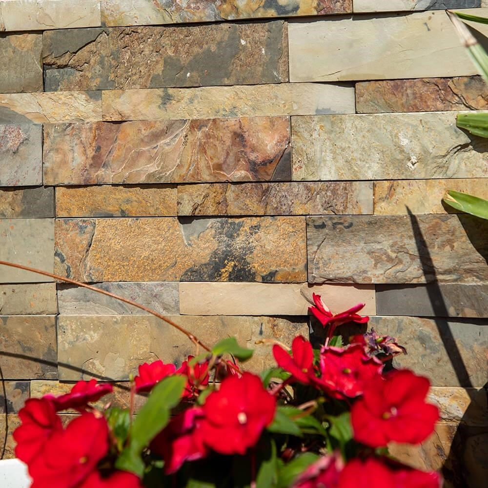 Шистите Индийска есен се предлагат като облицовъчни пана, а цветът им ви пренася в есенната прерия. Със своите бледо медни нюанси тези пана излъчват старинност по начин, който ще привнесе стил във всяка вътрешна и външна облицовка.