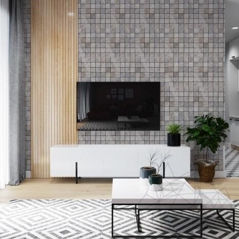 - Полирана 3D стенна мозайка от травертин Силвър