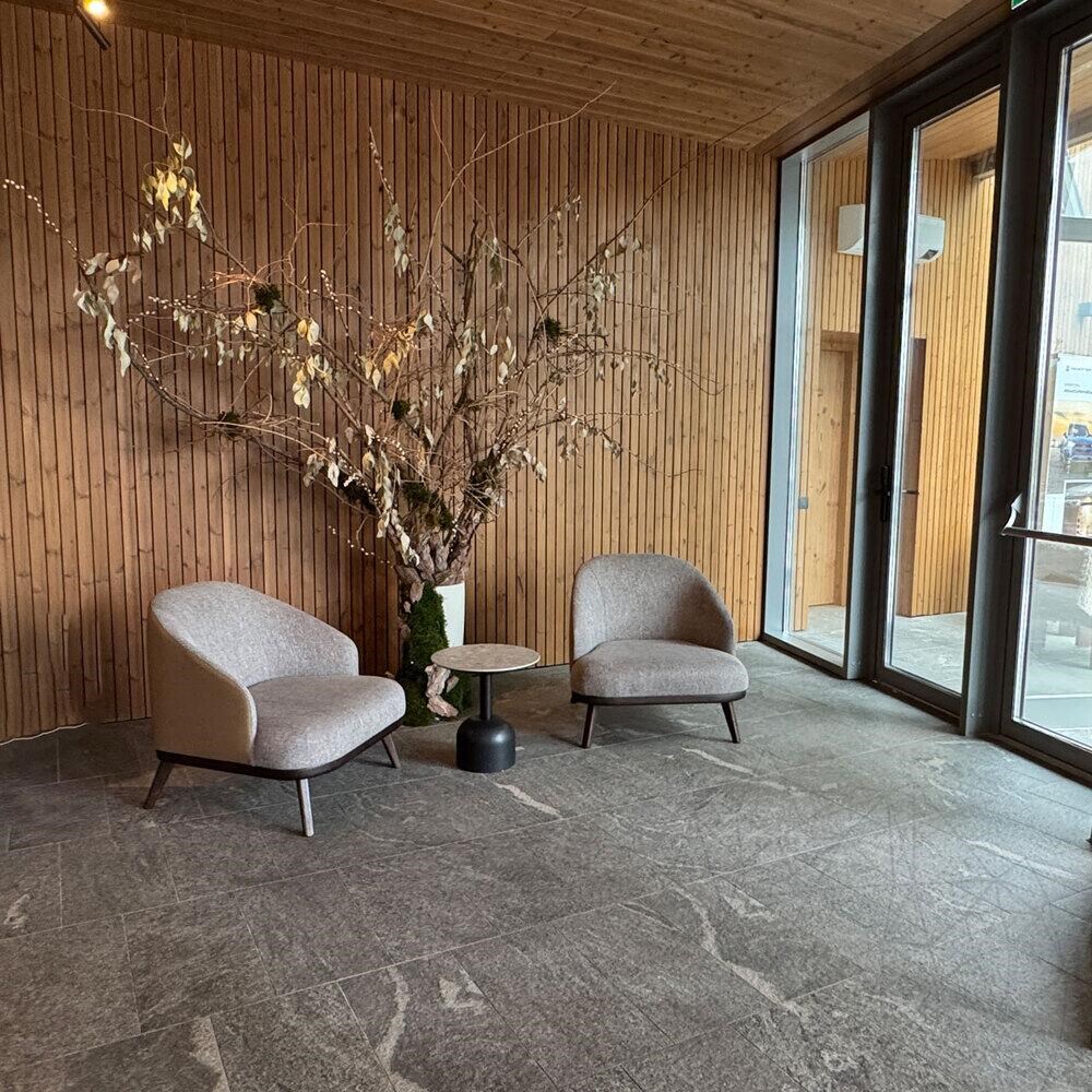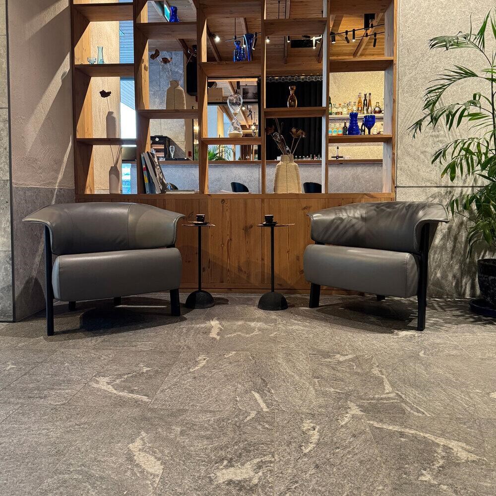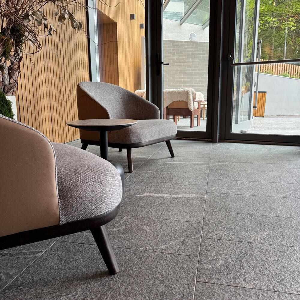 Тънките плочи на 1 см са от колекцията Combine Indoor & Outdoor. Те са с предназначение за вътрешни пространства, като целта е да се създаде така търсената непрекъснатост във визуалния облик между вътрешна и външна среда.